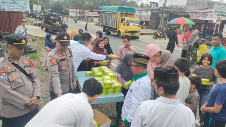 Ketua DPD Kab. Agam H. Hadi Syahputra (Kanan) Tampak turut andil membagikan takjil kepada pengguna jalan. Dok Lines