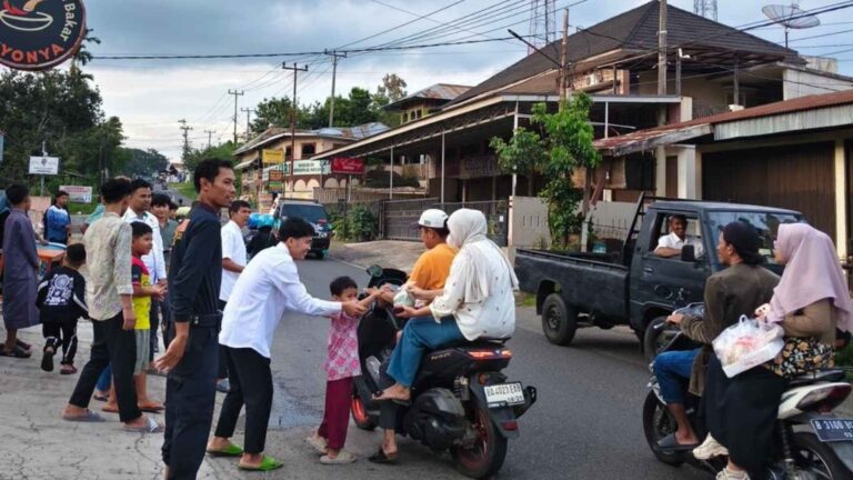 Bukittinggi (27/2). DPD LDII Kota Bukittinggi menggelar pembagian ratusan paket takjil bagi pengendara yang melintas di sekitar Masjid Al-Faqih, Campago Guguak Bulek, Jumat (27/2). Kegiatan ini didampingi oleh Ketua LDII Bukittinggi Sarjayadi dan Sekretaris Richi Candra bersama pemuda LDII dan warga setempat.