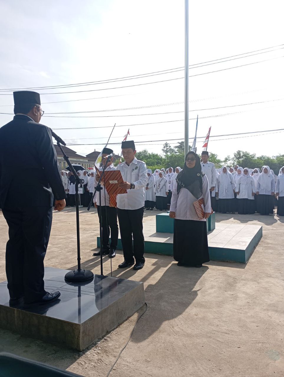 “Saya sangat surprie sekali untuk upacara tahun ini, karena sebelumnya kami upacara hanya sebatas instansi pemerintah, kemudian ditingkatkan lagi NU bergabung, Muhamadiyah bergabung, KUA bergabung, tahun ini ada Polsek dan Koramil bergabung, jadi seluruh komponen yang ada, kepolisian, TNI, seluruh ormas itu berkumpul,” ujar Kabid.