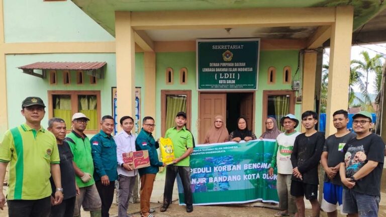 Solok (3/12). DPW LDII Sumatera Barat bersama DPD LDII Kabupaten Dharmasraya turun langsung membantu warga terdampak banjir di Kota Solok melalui kegiatan gotong royong dan penyerahan bantuan sembako. Aksi kemanusiaan ini dilakukan sebagai respon organisasi terhadap bencana hidrometeorologi yang menimpa daerah tersebut.