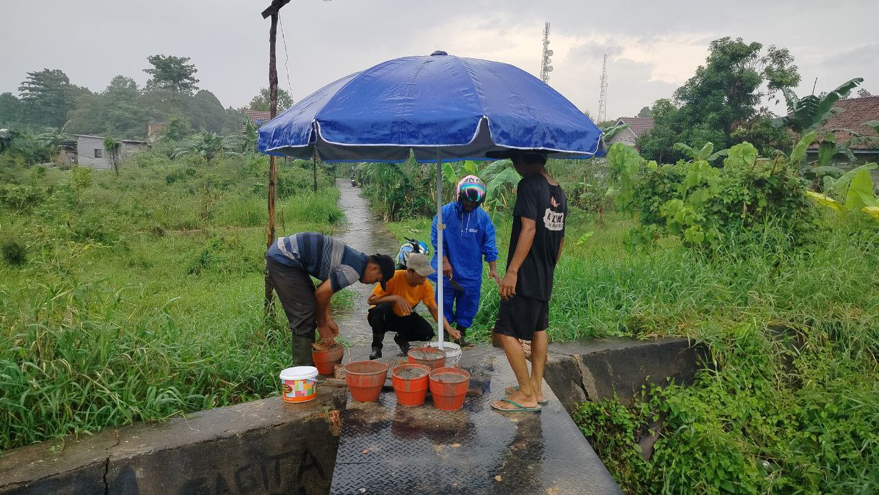Meskipun berlangsung di bawah hujan rintik-rintik, semangat warga tidak surut. Mereka bahu-membahu menyelesaikan fasilitas umum yang sangat dibutuhkan masyarakat setempat.