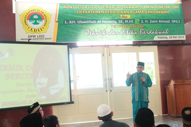 Hal inilah yang mendorong Dewan Pimimpinan Wilayah (DPW) Lembaga Dakwah Islam Indonesia (LDII) Sumatera Barat dalam mengadakan pelatihan bagi Da’i-Da’iyat LDII mengenai teknik dan etika berdakwah pada tanggal 18 Mei 2016 bertempat di Masjid Miftahul Huda, KPIK, Padang. Materi pelatihan langsung disampaikan oleh KH. Ubaidillah Al-Hasaniy, SE. M.Hi dan H. Zaini Ahmadi, S.Pd.I dari Departemen Pendidikan Agama dan Dakwah Dewan Pimpinan Pusat (DPP) LDII