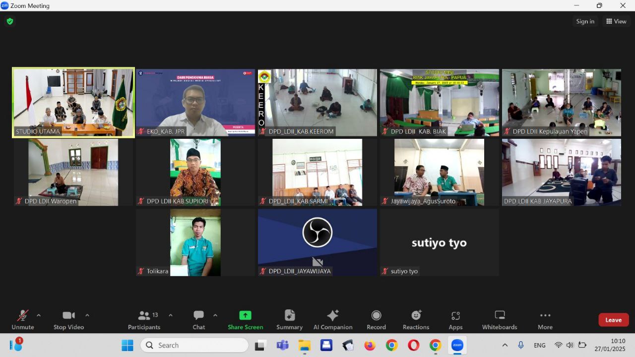 Jayapura (31/1). DPW LDII Provinsi Papua menyelenggarakan Rapat Koordinasi Wilayah (Rakorwil) Tahun 2025. Kegiatan ini dihadiri oleh dewan penasihat, pengurus harian, ketua biro, serta pengurus DPD LDII dari berbagai kota dan kabupaten se-Papua. Rakorwil berlangsung secara hybrid di Aula PPPM Al-Manshurin, Kota Jayapura, serta di masing-masing studio DPD LDII kota/kabupaten pada Senin (27/1).