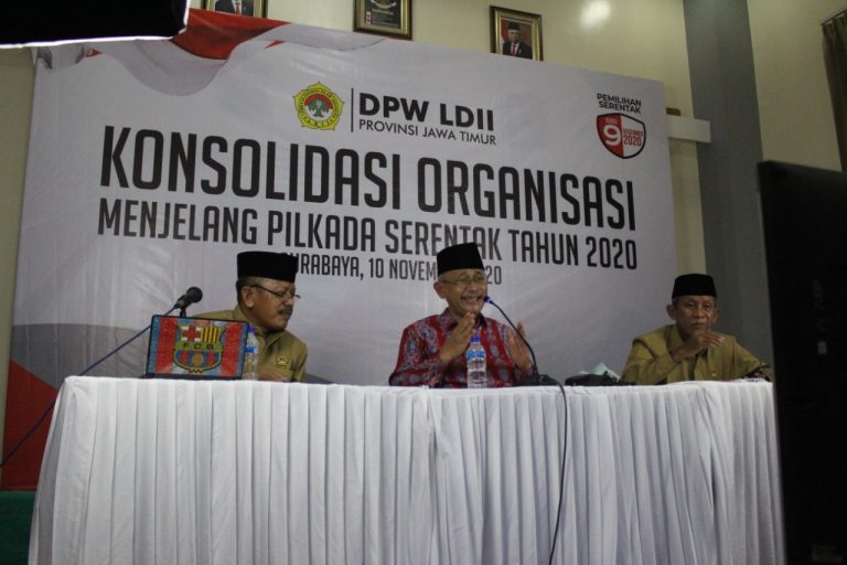 Surabaya (11/11). DPW LDII Jawa Timur menggelar konsolidasi organisasi menyikapi Pilkada serentak pada akhir 2020. Acara yang dihelat pada Selasa malam (10/11) tersebut dilaksanakan secara daring, dengan melibatkan seluruh pengurus tingkat Dewan Pimpinan Daerah (DPD) di 38 kabupaten/kota.