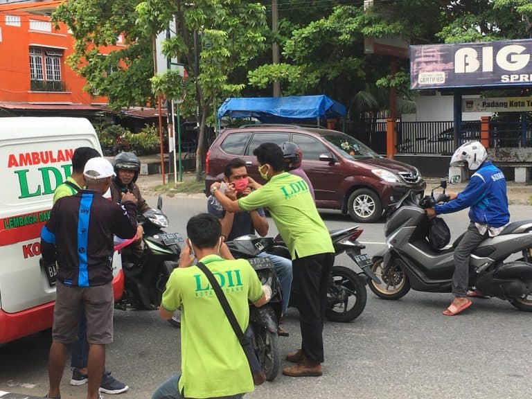 DPD Lembaga Dakwah Islam Indonesia (LDII) Kota Padang membagikan masker secara cuma-cuma kepada masyarakat setempat untuk memenuhi syarat bagi mereka keluar rumah saat adanya Pembatasan Sosial Berskala Besar (PSBB) di daerah tersebut.