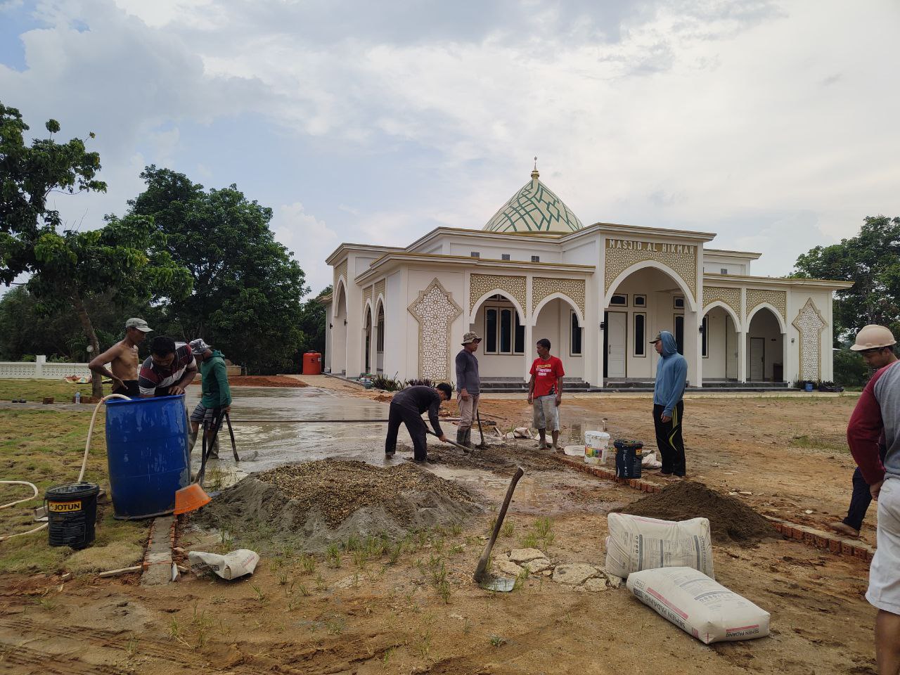 Selain mempermudah jalur keluar masuk, area yang dicor juga akan dimanfaatkan sebagai tempat parkir jemaah, terutama saat masjid dipadati pada pengajian atau salat berjemaah. Pengecoran dilakukan secara swadaya, mulai dari pengadaan bahan hingga pengerjaan. Sejak usai salat Zuhur, warga LDII telah berkumpul membawa peralatan masing-masing.